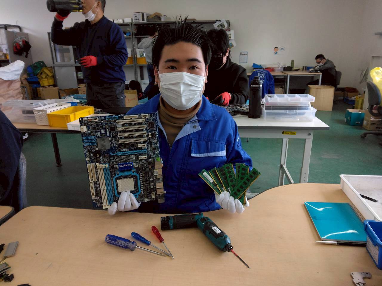 全国の障がい者施設が各施設で使用済みパソコンを集め、手作業で解体をして、都市鉱山に眠る金銀銅パラジウムを発掘し資源の少ない日本国内に循環させ、障がいを持つ仲間たち(敬意を込めてマイスターと呼ばさせていただいております)の低い水準の工賃を向上させる事業体が日本基板ネットワークです。